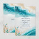 Responda a la celebración costera con esta elegante tarjeta RSVP. Los tonos azules serenos y las vibrantes olas del océano, acentuadas por coloridas conchas marinas y animales marinos, evocan un ambiente de playa de verano. Nuestra obra de arte generativa añade un toque de elegancia único a esta invitación. Personalizar con sus nombres, monograma y fecha de evento para crear una respuesta realmente personalizada. Únete a nosotros para celebrar el amor, la risa y momentos inolvidables en el contexto de nuestro paraíso costero.