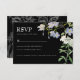 Tarjeta RSVP de boda floral blanca y negra moderna