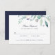 Tarjetas RSVP de boda impresas por personalizado a precios asequibles con una vegetación de color boho simple. Personaliza el diseño con la información de tu boda RSVP. Utilice las herramientas de diseño para personalizar del texto, elija cualquier color de fondo y edite las fuentes y colores para crear su propio diseño único de tarjeta de respuesta boda. En el lado inverso se muestra un fondo azul marino o se utiliza el espacio para agregar texto o fotos adicionales si es necesario. Este bonito diseño botánico moderno es perfecto para cualquier temporada.