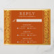 ¡Coordina las respuestas de sus invitados con elegancia! Esta tarjeta RSVP multievento le permite a sus invitados indicar fácilmente su asistencia para sus próximas festividades bodas. Con un hermoso diseño de mariscos de Relieve metalizado dorado, un símbolo de auspicio para los bodas hindúes, esta carta le agrega un toque de tradición a su proceso de respuesta.