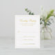 Tarjeta RSVP de boda de Relieve metalizado dorado de estilo tradicional con un diseño sencillo y clásico con "Kindly Reply" en una caligrafía elegante dentro de un borde delgado. La plantilla permite a sus invitados indicar el número de asistentes. Esta elegante tarjeta de respuesta es perfecta para un boda formal.