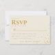 Una tarjeta RSVP moderna diseñada para coordinar perfectamente con mi Invitación a la boda mínima de Relieve metalizado dorado. El diseño, instalado en una base de crema mate suave, cuenta con un delicado grupo de pequeños puntos de Relieve metalizado dorado en la esquina inferior derecha, lo que le aporta un toque de elegancia y brillo.