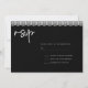 Tarjeta RSVP moderna de boda blanca y negra con fondo negro y efecto digital de encaje negro. Puede personalizar el texto seleccionando "Personalizar esta plantilla". O si desea realizar una personalizar aún más profunda de este diseño, seleccione "Editar usando la herramienta de diseño". Si necesitas artículos coincidentes, por favor contáctame.