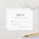 Elegante plantilla de tarjeta rsvp de respuesta minimalista en blanco y negro para boda PRESUPUESTO con un guión moderno de tipografía mínima de moda. +++++++++++ Fácil de personalizar con tus detalles! Adecuado para cualquier moderno y elegante boda temático. ++++++++ POR FAVOR LEA ESTO ANTES DE COMPRAR! Se trata de una tarjeta boda económica impresa en una hoja de papel (cada hoja tiene una tarjeta). +++ Para la mejor relación calidad precio, nuestro consejo es elegir el tipo de papel semibrillante (es lo suficientemente grueso como para ser usado para papel) ++++ Si necesita sobres, elija la OPCIÓN ENVELOPE. +++ Compruebe dos veces toda la información y la ortografía del texto porque recibirá exactamente lo que ve - nadie más comprobará nada antes de imprimir. ++++ Esta tarjeta está diseñada para el tamaño de 4,5" x 5,6". En el funda usted elige otro tamaño de la tarjeta y el texto sale de la página, todo debe ser corregido antes de añadir el producto al carrito. Por favor, pida ayuda al servicio de diseño en vivo.