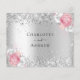 Un falso fondo metálico plateado, decorado con purpurinas falsos brillantes y florales rosas y blancas. Personalice y agregue la respuesta por fecha y sus nombres.