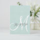 Elegante tarjeta RSVP de Boda Rústica de Linen Verde de Mint con diseño de Monograma de Elke Clarke ©. Personalizar con su monograma, nombres y colores bodas. Añade todo el texto de rsvp de tu boda en la parte posterior de la tarjeta utilizando las instrucciones de menú fáciles de usar de Zazzle. La ropa de cama verde es un efecto fotográfico impreso. Viene con sobre blanco en blanco.