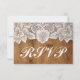 Cartas RSVP de matrimonio rústico en un fondo de madera de granero con encaje antiguo en la parte superior (diseño impreso). Añade tus detalles de respuesta a la plantilla. tarjetas rsvp de bodas de paja, tarjetas de respuesta, tarjetas de respuesta, boda de países occidentales, tarjetas rsvp de bodas de paja y de encaje