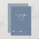 Sencilla tarjeta RSVP Dusty Blue Script Wedding - Elegante y minimalista, esta polvorienta tarjeta RSVP de boda de guion azul añade un toque refinado a su suite de papelería. Con una tipografía limpia y una suave paleta azul, se complementa perfectamente con temas bodas modernos o clásicos. Ideal para reunir respuestas de invitados con estilo.