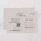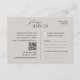 Bienvenido a la combinación perfecta de tradición y tecnología con nuestra tarjeta RSVP de Boda de Taupe. Diseñada para la moderna y elegante boda, esta tarjeta RSVP combina armoniosamente el encanto de las respuestas a mano con la comodidad de un código QR. El delicado tipo de letra del guión añade un toque de sofisticación, mientras que el sutil tono taupe proporciona un fondo atemporal, asegurando que su suite de invitaciones exude refinamiento. Ya sea que sus huéspedes sean expertos en tecnología o prefieran el método clásico de escritura a papel, esta tarjeta RSVP atiende a todos, lo que lo convierte en una incorporación sin esfuerzo a su día especial. Aproveche la integración perfecta de estilo y funcionalidad para una experiencia boda inolvidable.