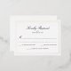 Complementa sus invitaciones caseras tradicionales con esta tarjeta tradicional RSVP que incluye un elegante borde de Relieve metalizado dorado. Esta tarjeta RSVP, diseñada para coordinarse a la perfección con su suite tradicional de invitados a la boda, combina estilo y funcionalidad, lo que facilita a sus huéspedes la respuesta a su día especial.