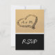 Tarjetas de respuesta de boda de destino de playa moderna. Tarjetas RSVP modernas con el corazón en el motivo de arena. Personalizar con su información y elección de color. Diseño de Elke Clarke © 2011