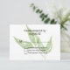 Bonita tarjeta de respuesta boda blanca, con acuarelas gráficas de hojas de plantas verdes, en la parte delantera. La parte trasera de la tarjeta RSVP está hecha en verde claro. Personalice los campos de texto para adaptarlos a sus necesidades de eventos.