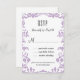 Esta encantadora tarjeta de damasco morado rsvp coincide con nuestra "Invitación a la boda de caligrafía elegante de Purple Damask"