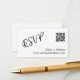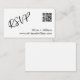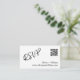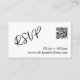 Facilite la respuesta de los huéspedes con esta moderna tarjeta de gabinete RSVP, que incluye un guión manuscrito en negrita, un código QR escaneado y un diseño limpio en blanco y negro. Perfecto para suites bodas minimalistas y contemporáneas, esta tarjeta permite a los huéspedes acceder rápidamente a su página web boda o a la página RSVP. Personalizable completo con sus nombres y enlace para una inserción elegante y funcional.