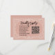 Esta tarjeta RSVP encarna el minimalismo con propósito, sirviendo no solamente como un llamado a la acción sino como una extensión de la identidad del evento. Su rostro es silenciosamente dominante: un fondo rosa cuidadosamente equilibrado aloja un código QR central representado en blanco nítido, posicionado para llamar la atención sin sobrecargar el diseño sereno. Los márgenes generosos y el espaciado medido permiten una clara mensajería en una tipografía elegante, creando un tono de sofisticación sin esfuerzo. El código QR, ideal para los clientes expertos en tecnología, aloja el diseño en este momento, ofreciendo un puente fluido a su sitio web boda, registro digital o formulario RSVP. No hay visualizaciones adicionales que compitan por el espacio; todo está compuesto con un énfasis en la claridad, el contraste y la confianza. Volteando hacia atrás, el ambiente cambia a uno de la elegancia eterna. Un par de iniciales se despliegan en un hermoso tipo de letra de guión —elegante, ornamentado y centrado en un aislamiento tranquilo. Debajo, la fecha de boda se establece en un delicado emparejamiento serif o sans-serif, completando la jerarquía visual. Sin bordes decorativos ni motivos de fondo, el monograma representa una declaración de simplicidad refinada, como una firma a mano al final de una carta muy apreciada.