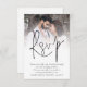 Tarjeta RSVP de boda QR de código QR para superposición de fotografía moderna. Invite a sus invitados a responder en línea. Agregue su código QR a la página de respuesta del sitio web de su boda en la parte posterior. Una tipografía de conjunto informal en negro para el título principal RSVP y el resto del texto que se puede personalizar fácilmente. Reemplace la foto de ejemplo con su propio favorito de orientación hacia el paisaje.
