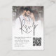 Tarjeta RSVP de Boda de código QR con guión de superposición de foto minimalista. Invite a sus invitados a responder en línea. Agregue su código QR a la página de respuesta del sitio web de su boda. Una tipografía de conjunto informal en negro para el título principal RSVP y el resto del texto que se puede personalizar fácilmente. Reemplace la foto de ejemplo con su propio favorito de orientación hacia el paisaje.
