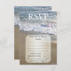 Tarjeta RSVP con una imagen de playa de ensueño con olas fluyendo por la arena. Esta tarjeta RSVP coincide con invitaciones de boda.
