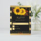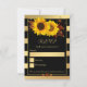 Elegante tarjeta RSVP con girasoles en hojas de otoño con remolinos florales en oro rosa y oro en un fondo de rayas doradas. Puede elegir otro color para reemplazar el negro si lo desea.