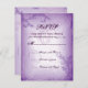 Tarjeta RSVP de la boda de la hoja de lila púrpura de la vintage, con elegantes rollos de hojas en púrpura lila sobre fondo grunge.