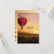Tarjeta RSVP con un globo de aire caliente con un par de siluetas sobre un paisaje de ensueño al atardecer. Este diseño coincide con invitaciones.