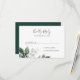 Esta tarjeta RSVP de boda horizontal esmeralda es perfecta para un boda boho. El diseño es elegante y rústico, con unas hojas de acuarela verde oscuro y un eucalipto con un toque bohemio moderno.