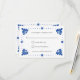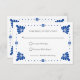 Esta carta de talavera mexicana RSVP está inspirada en las bellas baldosas y el arte folclórico que se encuentran en México y en todo el suroeste estadounidense. El llamativo color azul y la tipografía clásica crean un ambiente elegante, moderno y tradicional. Esta tarjeta de recinto boda presenta un bonito diseño en la parte posterior. Personalizar la redacción, o deja como está.