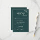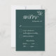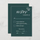Esta elegante y minimalista carta de boda RSVP cuenta con flor pintada a mano blanca y texto con una delicada paleta verde esmeralda de moda decorando el fondo.