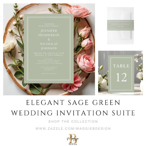 Elegant Sage Green Formal Wedding Invitation SuiteDiseñado por Maggie B Design