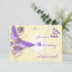Diseño de imágenes Digitalbcon con un tema de color morado, melocotón y blanco con una variedad de imágenes personalizados, formas, patrones, estilos y letras de texto en esta tarjeta RSVP de cumpleaños única. Esta colorida y atractiva tarjeta de invitación viene con un diseño complementario al revés con letras de texto personalizado para su ocasión especial.