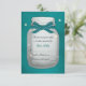 Tarjeta RSVP de Mason Jar verde azulada con luciér