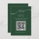 Esta tarjeta RSVP de matrimonio QR verde esmeralda es perfecta para su boda verde clásico mínimo. Con la combinación perfecta de caligrafía elegante y romántica y estética chic y desagradable, simplemente añada tu propio código QR y sitio web boda. Personaliza el texto para leer lo que quieras.