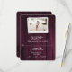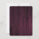 Envíe a los huéspedes una tarjeta RSVP de boda de fotos de Magenta Wooden sencilla y elegante con su invitación. El diseño de la tarjeta RSVP incluye un fondo rústico de madera magenta con un marco de estilo de imagen en capas para su propia foto. Personalice con la fecha de respuesta y las opciones de menú. También hay material de boda adicional disponible con este diseño. ¿Necesita ayuda con la personalización? Por favor, contáctame y elaboraré la redacción y los detalles para adaptarlos a su satisfacción.