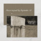 Personalizar la carta de respuesta RSVP de boda rural informal y desenfadada con tu fecha de respuesta de matrimonio específica. Se ha añadido un efecto de papel antiguo digital y un tono sepia para realzar el aspecto vintage. Esta rústica tarjeta nupcial de rancho personalizado r.s.v.p. cuenta con una fotografía de granja de tono sepia de un puesto de alambre de madera y alambre de púas.
