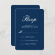 Esta sencilla pero clásica tarjeta de respuesta rsvp de boda presenta una elegante combinación de fuentes en un fondo azul marino. Este diseño es atemporal y funcionará con cualquier tema boda. Personalizar el color de fondo para que coincida con los colores bodas.