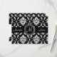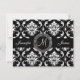 Tarjeta RSVP de Monograma de Damasco Blanco y Negr