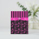 Tarjeta RSVP de rayas negras y rosadas en caliente