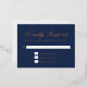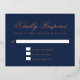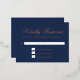 Tarjeta RSVP de bodas de Relieve metalizado dorado azul marino y rosa de estilo tradicional con el título "Kindly Respond" en una caligrafía elegante. Esta tarjeta de respuesta boda clásica es perfecta para un boda formal.