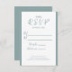 Tarjeta RSVP de bodas de verano diseñada en verde sabio con fondo blanco. Para personalizar, simplemente inserte sus detalles en nuestra plantilla, reemplazando el texto de ejemplo. No olvide ver toda la colección de Bodas de sabios de verano para que coincida con Stationery y Accessories.