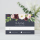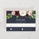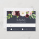 La elegante tarjeta RSVP floral acuática cuenta con un conjunto de flores rosadas, de marsala borgoñona y de marfil con un frondoso follaje botánico. Personalice la fecha deseada de RSVP, así como el personalizado acepte y rechace la redacción sobre un fondo azul marino rico. Diseñado para coincidir con nuestro boda Rubor Romance y Midnight Romance y colección especial de eventos.