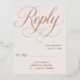 Una tarjeta RSVP de color suave acentuada con un romántico Relieve metalizado de oro rosa para un toque de elegancia. Ideal para las temáticas bodas modernas, románticas o minimalistas. Recopile las respuestas de sus huéspedes de forma elegante y elegante.