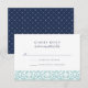 Diseñada para coordinar con nuestra colección de invitaciones a bodas Santorini en Aqua, esta elegante tarjeta de respuesta de estilo mediterráneo cuenta con un borde inferior geométrico inspirado en baldosas en una lujosa agua turquesa. Añada la fecha de su RSVP y el texto de aceptación/rechazo del personalizado en azul marino crudo sobre blanco.