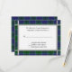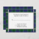 Bonita tarjeta RSVP de la respuesta tradicional de los bodas de manteca de lona de tartán. El colorido clan azul y verde Scott recubre, al fondo, un espacio de texto blanco rodeado de un borde de agua dulce. Personalice la fecha o el texto a las necesidades de su boda.