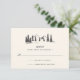 La cálida tarjeta RSVP de marfil combina con nuestro boda rústico de moda Mountain Sketch e invitaciones a eventos, y cuenta con un pequeño ilustracion de pinos y pinos de montaña. Personalice con la fecha deseada de RSVP y el texto de aceptación/rechazo del personalizado.