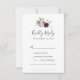 Esta florida tarjeta RSVP para canciones románticas es perfecta para una boda elegante. El moderno diseño rústico de boho cuenta con románticas flores acuáticas en tonos suaves de burdeos, malva, rosa y crema blanca con hojas verdes. ¡Elabore su lista de invitados bodas y su lista de canciones de la pista de baile al mismo tiempo! Esta tarjeta de respuesta boda le pregunta convenientemente a los invitados si podrán asistir a su boda, y también qué canción les hará bailar.