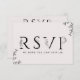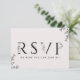 Esta tarjeta RSVP de solicitud de tipografía floral es perfecta para una boda elegante. El diseño romántico está decorado con letras sencillas, flores, un borde botánico y un suave fondo de color negro. ¡Elabore su lista de invitados bodas y su lista de canciones de la pista de baile al mismo tiempo! Esta tarjeta de respuesta boda le pregunta convenientemente a los invitados si podrán asistir a su boda, y también qué canción les hará bailar.