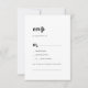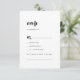 Esta moderna tarjeta RSVP de solicitud de tipografía negra es perfecta para un simple boda. El diseño minimalista blanco y negro presenta un estilo retro-contemporáneo con un toque bohemio rústico único. Perfecto para cualquier temporada. Manténgalo mínimo, como está, o agrega tus propios gráficos y obras de arte. ¡Elabore su lista de invitados bodas y su lista de canciones de la pista de baile al mismo tiempo! Esta tarjeta de respuesta boda le pregunta convenientemente a los invitados si podrán asistir a su boda, y también qué canción les hará bailar.