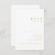 Esta Minimalista tarjeta RSVP de la canción Gold Font es perfecta para su boda elegante. Su diseño abstracto, sencillo y único, acompañado de un guión minimalista contemporáneo y una paleta de colores dorados, le da a este producto una sensación de lujo formal y elegante al tiempo que se mantiene simplista, bohemiana de moda. Manténgalo como está, o elige personalizarlo con obras de arte o gráficos de su elección. También puede consultar otros productos de esta colección para reunir a todo su boda.