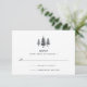 La tarjeta RSVP blanca y elegante combina con nuestra moda rústica boda de la Selva de Invierno y las invitaciones a eventos, y cuenta con pinos de silueta en una marina húmeda y gris azul. Personalice la fecha deseada de RSVP.