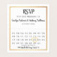 Tarjetas RSVP del calendario de Relieve metalizado dorado moderno de la tienda de tarjetas de visita.